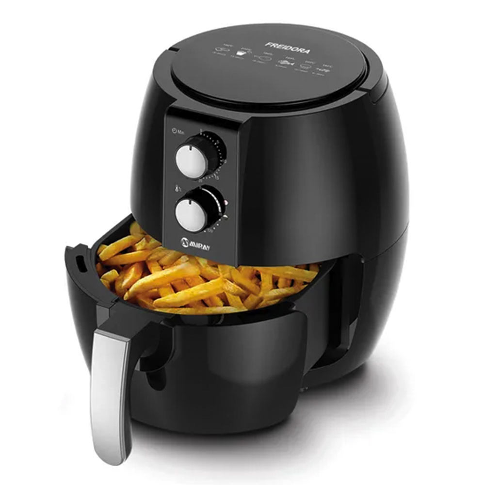 Freidora de aire de alta eficiencia para cocinar de forma más saludable, con menos grasa y todo el sabor. Capacidad de 3 a 6 litros. El complemento perfecto para cocinas rápidas y saludables.