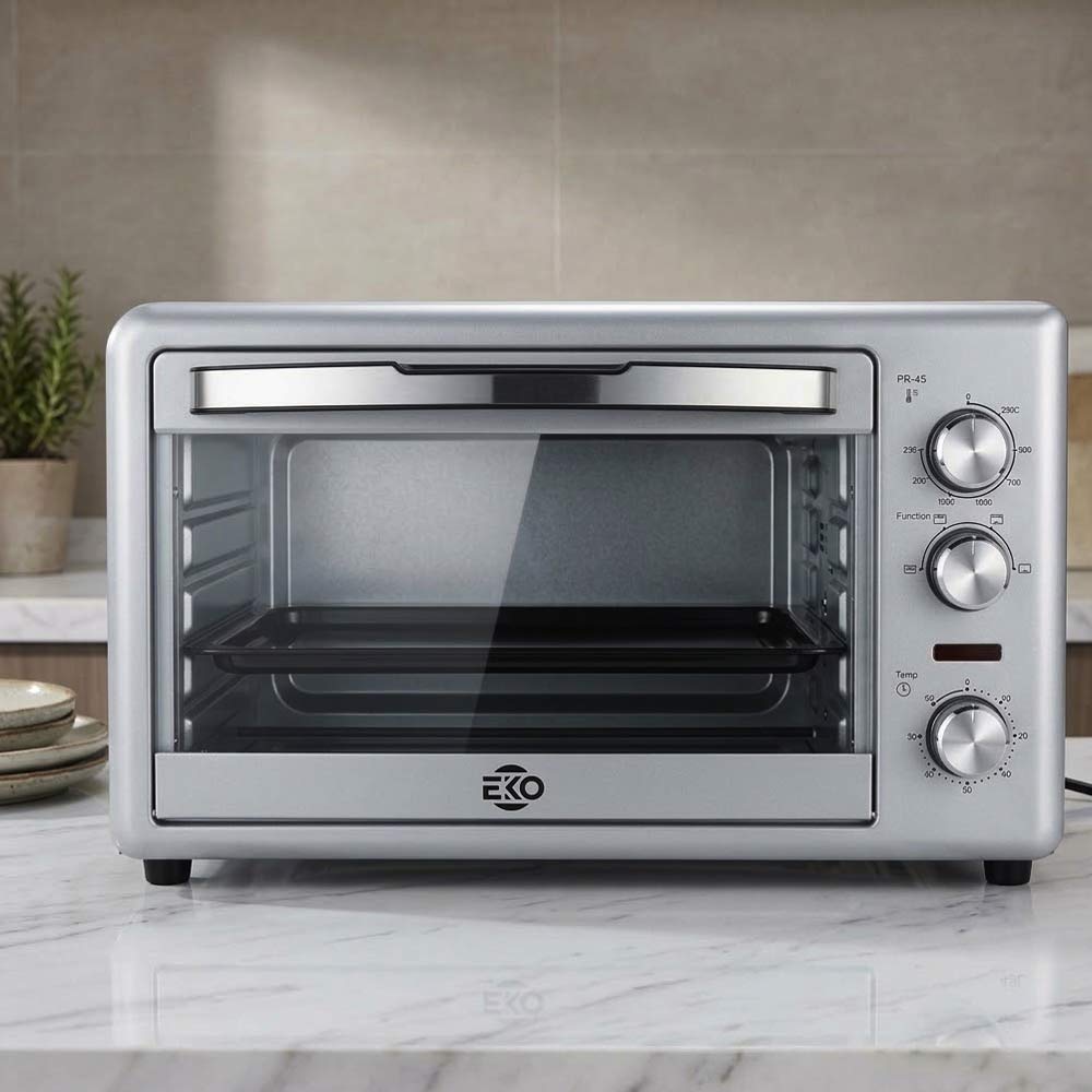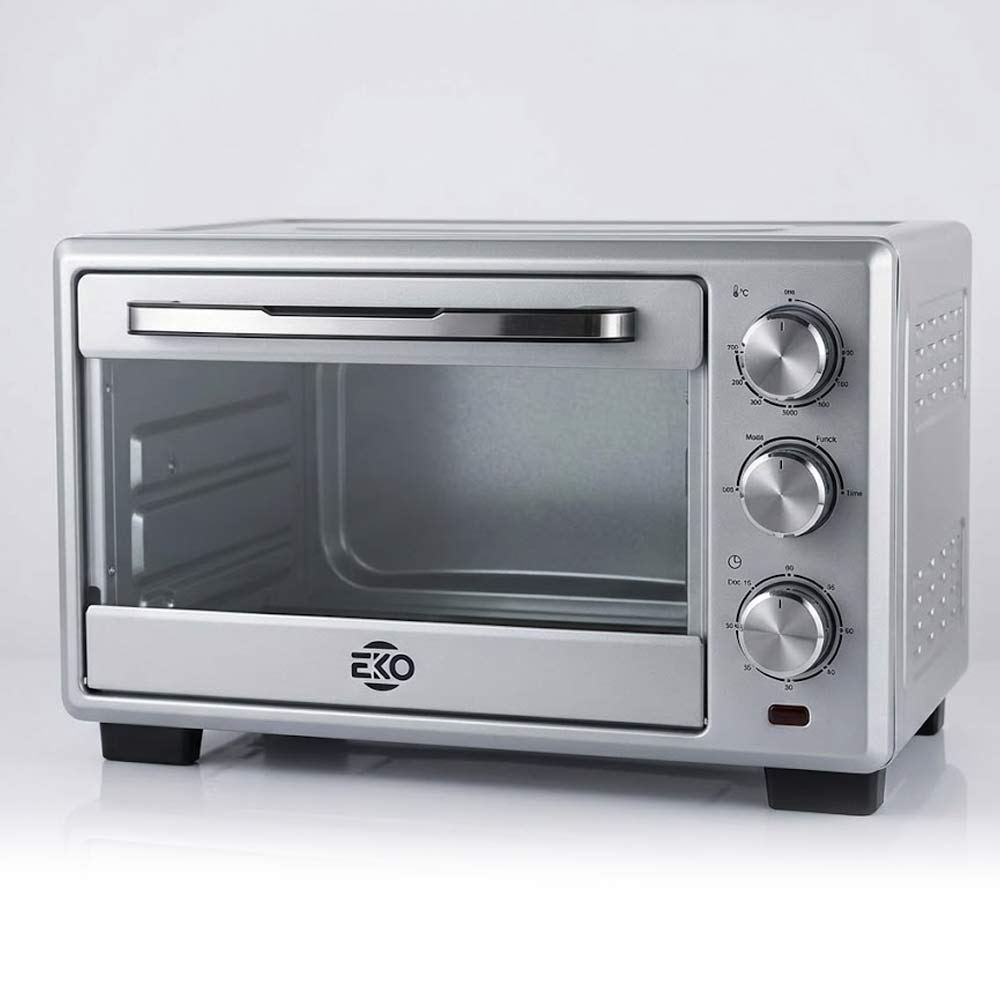 EKO electric oven available in 22L and 32L capacities. Ideal for baking, grilling, toasting, and reheating food with adjustable temperature control and an integrated timer for convenient everyday cooking.