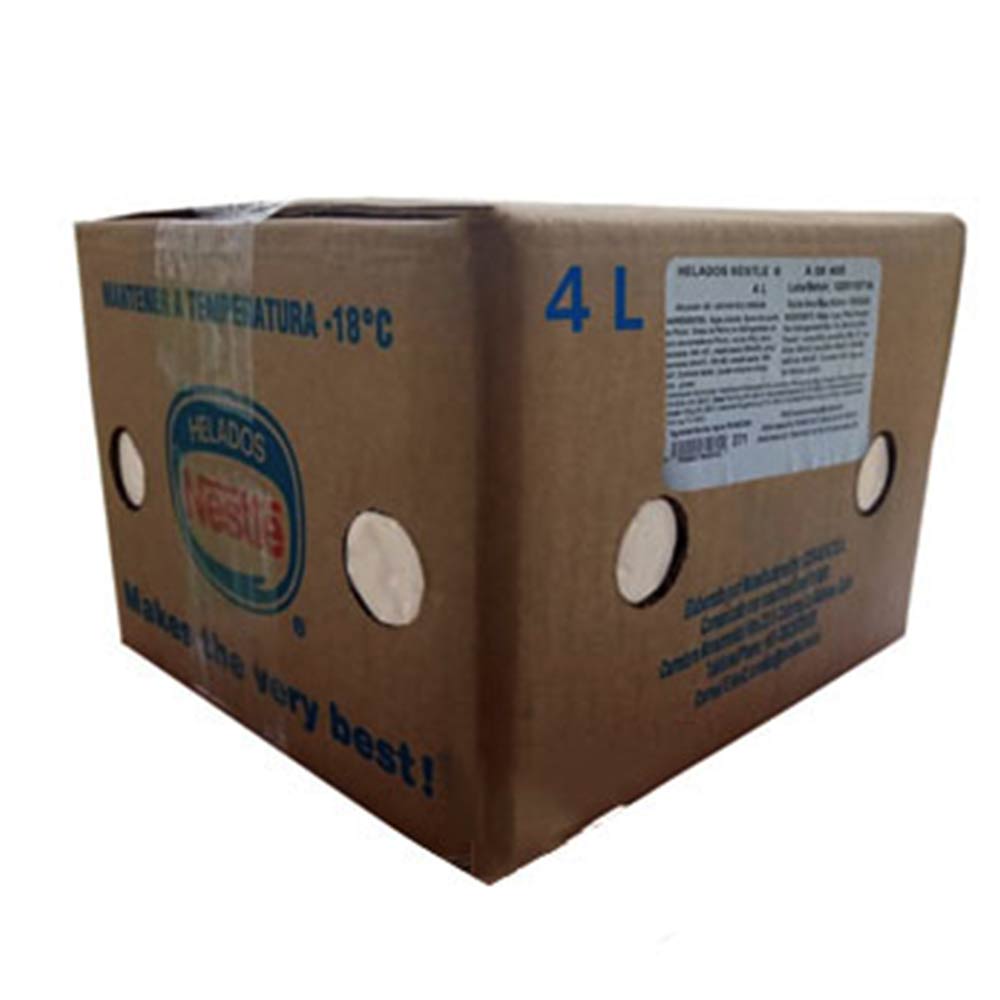 Creamy 4 L ice cream in plastic tub or cardboard box with nylon lining. Ideal for sharing or commercial use. Color and flavor may vary by availability.